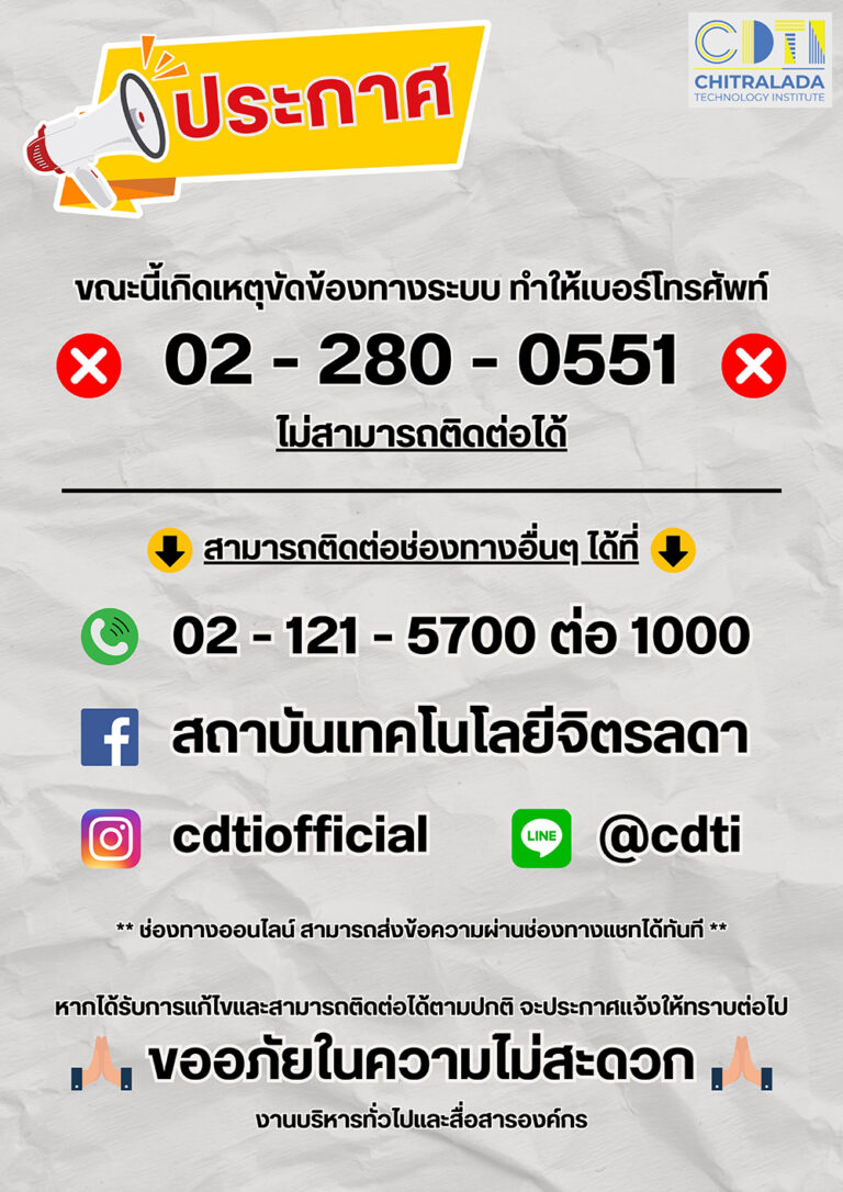 โทรศัพท์ 0-2121-3700 ต่อ 1000