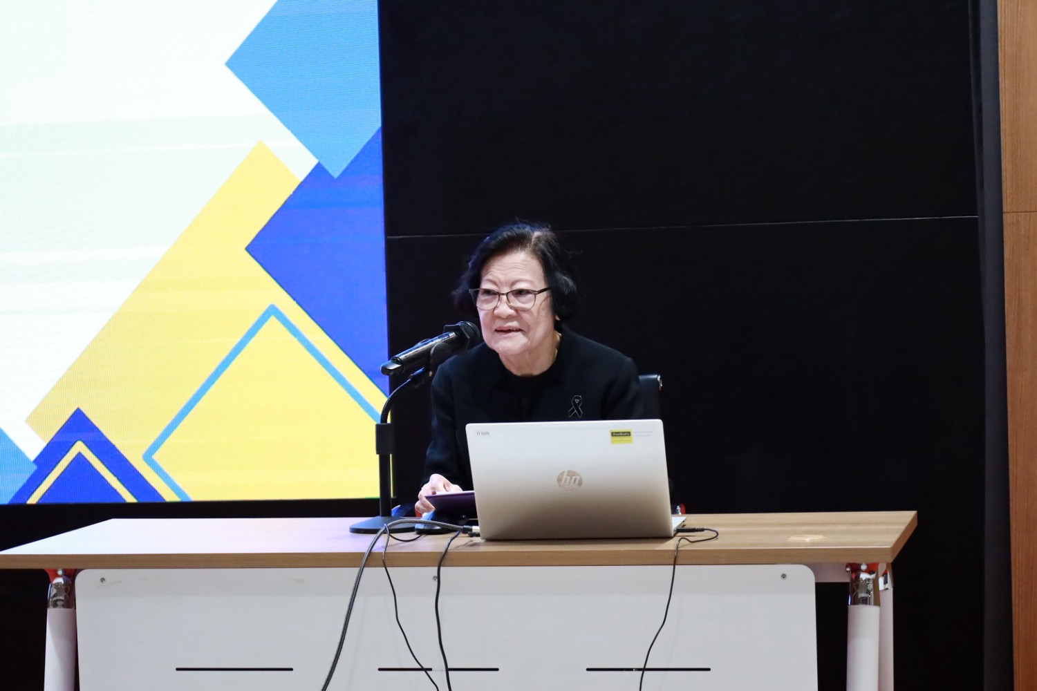 รศ.ดร.คุณหญิงสุมณฑา พรหมบุญ ชี้แจงทิศทางการดำเนินงานของสถาบันเทคโนโลยีจิตรลดา แนวคิดการดำเนินงาน คุณค่าทางจริยธรรม การปรับวิสัยทัศน์ การปรับปรุงแผนพัฒนาสถาบัน