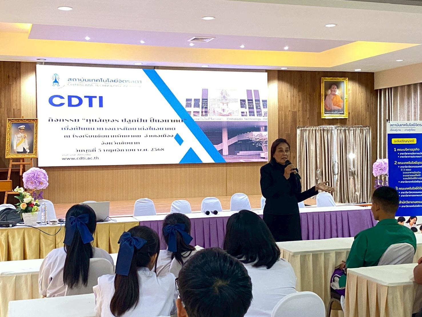 เมื่อวันที่ 5 พฤศจิกายน 2568 ที่หอประชุมอเนกประสงค์ โรงเรียนชัยนาทวิทยาคม อำเภอเมือง จังหวัดชัยนาท เวลา 15.00 น. นางวสุกานต์ ธีรภัทกร ที่ปรึกษาอธิการบดี สถาบันเทคโนโลยีจิตรลดา โดยมี หัวหน้างานทุนการศึกษาและบริการนักเรียนและนักศึกษา พร้อมด้วยผู้แทนงานบริหารทั่วไปและะสื่อสารองค์กร และบุคลากรสถาบัน เข้าจัดกิจกรรมแนะนำ “ทุนสัญจร ปลูกฝัน ปั้นอนาคต” ประชาสัมพันธ์ทุนการศึกษาประเภทต่างๆ ตลอดจนระบบสวัสดิการนักศึกษาให้แก่นักเรียนมัธยมศึกษา ชั้นปีที่ 6 ครูแนะแนวโรงเรียนชัยนาทพิทยาคม โรงเรียนบุญนาคพิทยาคม โรงเรียนสรรพวิทยาคม และโรงเรียนคุรุประชาสรรค์ โรงเรียนในเขตพื้นที่จังหวัดชัยนาท ร่วมกิจกรรมในครั้งนี้ เพื่อใช้ประะกอบการตัดสินใจเข้าศึกษาต่อระดับอุดมศึกษา สถาบันเทคโนโลยีจิตรลดา ในปีการศึกษา 2569 ต่อไป