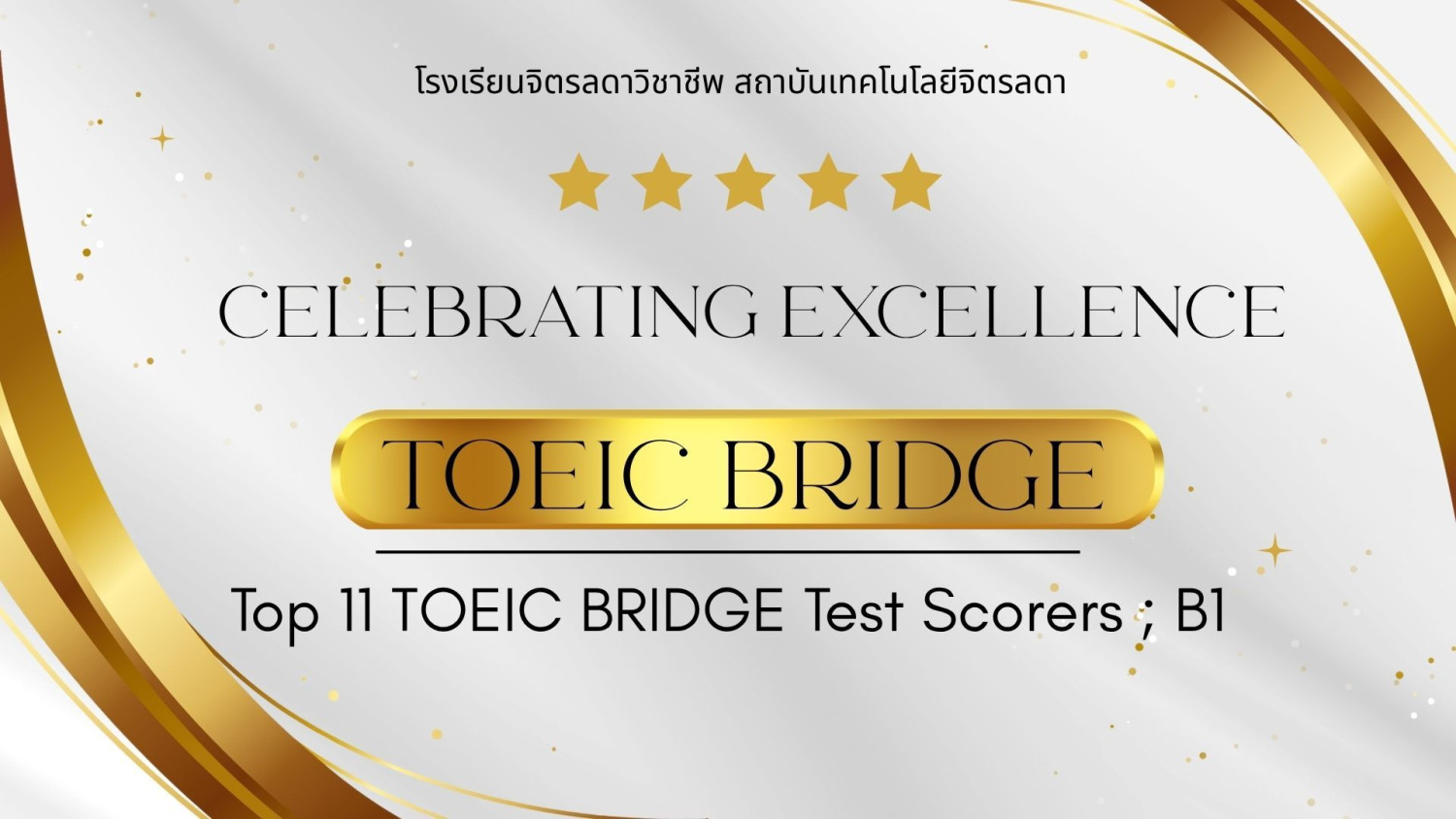 สถาบันเทคโนโลยีจิตรลดาขอแสดงความยินดีกับนักเรียนระดับประกาศนียบัตรวิชาชีพ (ปวช.) ชั้นปีที่ 1 โดยแผนกวิชาสามัญ จัดการทดสอบภาษาอังกฤษ TOEIC Bridge (คะแนนเต็ม 100 คะแนน) โดยได้รับการสนับสนุนจาก Center for Professional Assessment (Thailand) ประจำปีการศึกษา 2568 เมื่อวันที่ 19 กันยายน 2568 ณ ห้องประชุมมหาจักรีวิทยประสิทธิ ชั้น 4 อาคาร 60 พรรษา ราชสุดาสมภพ สถาบันเทคโนโลยีจิตรลดา เข้าร่วมการทดสอบความรู้และความสามารถทางภาษาอังกฤษ (TOEIC Bridge) โดยมีจุดประสงค์การสอบ เพื่อเป็นการวัดระดับความสามารถทางภาษาอังกฤษและนำคะแนนไปจัดแบ่งกลุ่มตามศักยภาพของนักเรียนเพื่อจัดการเรียนการสอนให้มีประสิทธิภาพมากยิ่งขึ้นแก่นักเรียนระดับประกาศนียบัตรวิชาชีพ (ปวช.) ชั้นปีที่ 1 เพื่อใช้คะแนนในการแบ่งกลุ่ม เพิ่มประสิทธิภาพการเรียนการสอนภาษาอังกฤษ ตามศักยภาพของนักเรียนอย่างเหมาะสม ผลการสอบพบว่า มีนักเรียนที่สอบได้ในระดับ B1 ขึ้นไปจำนวน 11 คน คะแนนสูงสุดคือ 97 คะแนน